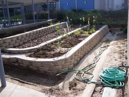 | A project plan was presented to a local supplier who, in turn, provided his support to this school garden with the donation of the cement garden wall blocks. |